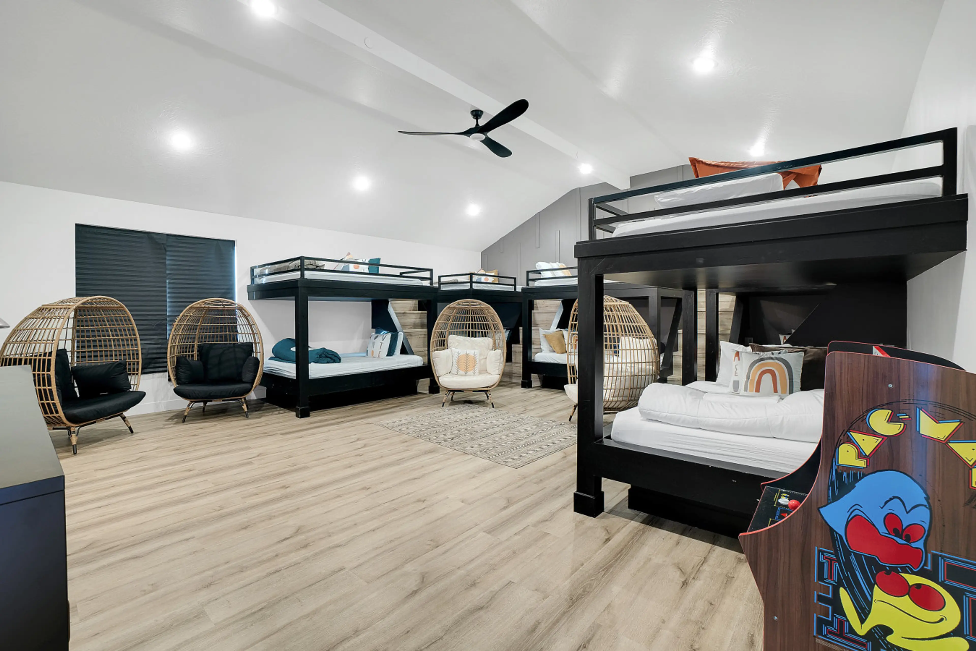 Overall we loved the stay. The houses are well built, and flow well for large gatherings. We did struggle with access to and using the garages. This meant all of our parking was on the street. Not ideal but it worked. We also noticed there were a few household items missing, we were unable to find any dish cloths or hand towels to use to clean up the kitchen / dry dishes. There were no utensils to use with the BBQ. One of the beds was also dirty in the linens. We were unable to use the washer and dryer in one of the units because it kept tripping the breaker. This then disconnected our Wifi which was a struggle especially for a work trip. There was a lot of dust / dirt in the breeze way pool area. There were also no blinds on the windows in several of the upstairs rooms. This meant at night you could see right into the bedrooms. (This could potentially be embarassing) We were able to adjust and flow with these hiccups and each time we reached out the team was great to help solve our issues and keep things going smoothely.You could tell the units were new and most of these hiccups will likely be corrected as they go.